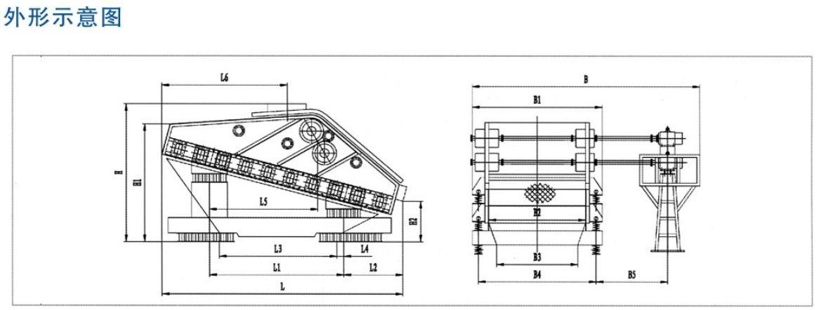 該系列振動篩由篩箱、激振器、支承彈簧、隔振架、二次隔振彈簧、電動機及其支架等組成。